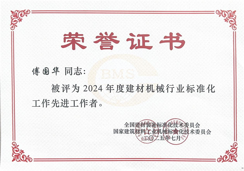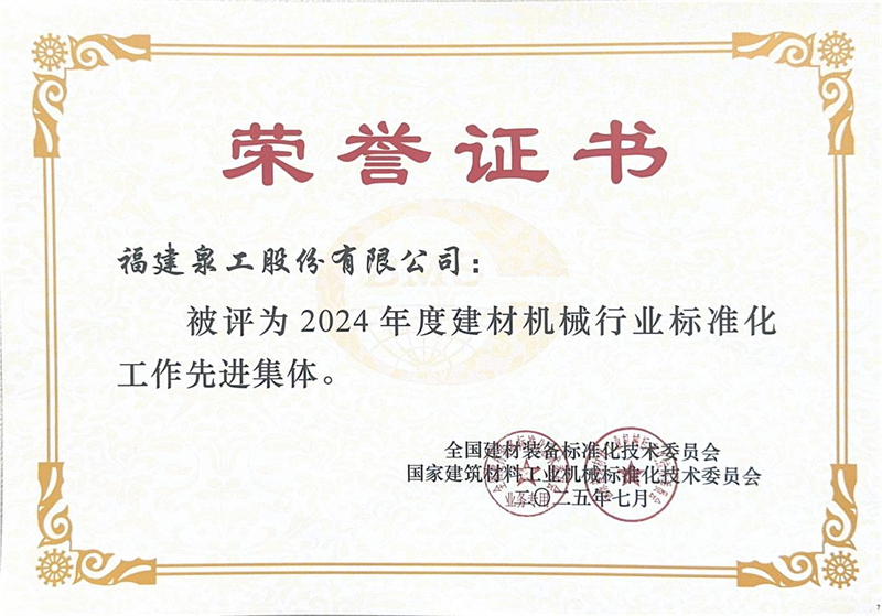 అదే సమయంలో జరిగిన అభినందన సెషన్లో, Quangong Machinery Co.,Ltdకి "2024లో బిల్డింగ్ మెటీరియల్స్ మెషినరీ ఇండస్ట్రీలో అడ్వాన్స్డ్ కలెక్టివ్ ఇన్ స్టాండర్డైజేషన్ వర్క్" అనే బిరుదు లభించింది మరియు కంపెనీ డిప్యూటీ జనరల్ మేనేజర్ ఫు గుయోహువాకు వర్క్డ్ మెషీనరీ ఇన్ బిల్డింగ్ బిరుదును ప్రదానం చేశారు. 2024లో పరిశ్రమ".